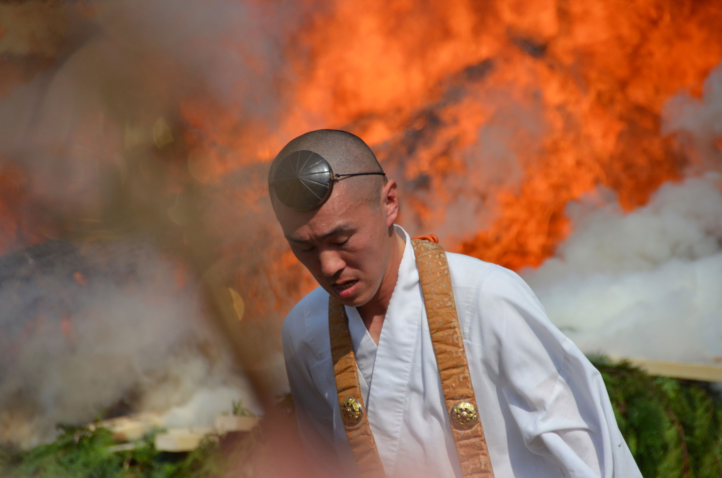 Στο παραδοσιακό τελετουργικό οι μοναχοί Γιαμαμπούσι, του ορεσίβιου ασκητισμού Σουγκέντο και της βουδιστικής σχολής Σίνγκον, περπατάνε στα αναμμένα κάρβουνα ψέλνοντας προσευχές εξαγνισμού.  Αργότερα όταν πέφτει η θερμοκρασία συμμετέχουν και παρευρισκόμενοι θεατές.