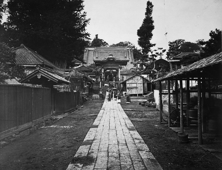 Η αποστολή εγκαταστάθηκε αρχικά στους χώρους υποδοχής και φιλοξενίας του ναού. Ωστόσο, μετά τον εμπρησμό τους από σαμουράι που αντιτίθεντο στην ολοένα αυξανόμενη δυτική επιρροή, εγκαταστάθηκε σε αίθουσες του κυρίως κτιρίου. Το 1875 η έδρα της διπλωματικής αποστολής μεταφέρθηκε στο Τσουκίτζι και αργότερα, το 1890, στην Ακασάκα, όπου βρίσκεται σήμερα η Πρεσβεία των ΗΠΑ.