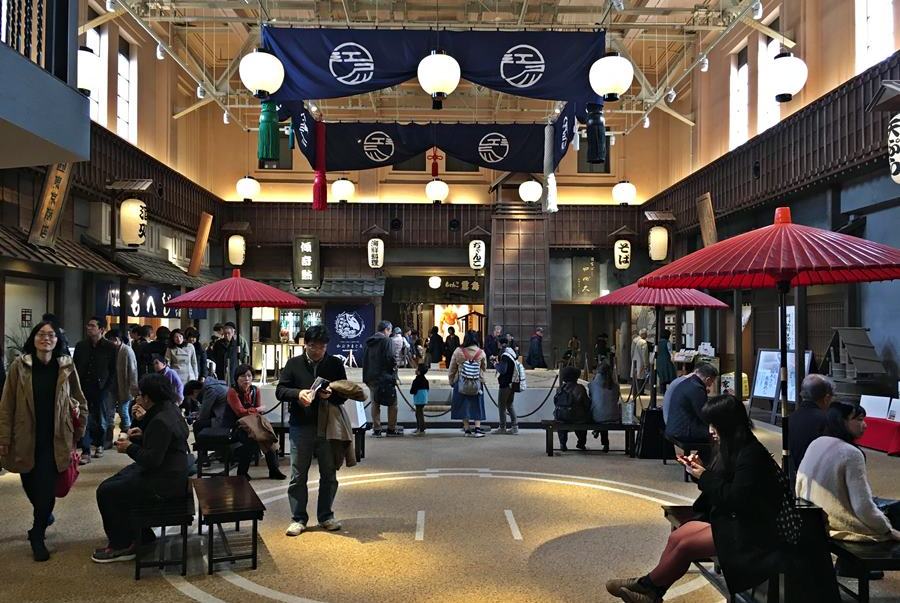Νοσταλγική ατμόσφαιρα του Έντο στo παλαιό κτίριο του σιδηροδρομικού σταθμού Ριογκόκου που βρίσκεται εκεί από το 1929. Το εσωτερικό έχει αναπαλαιωθεί και έχουν ανοίξει δώδεκα εστιατόρια όπου οι επισκέπτες μπορούν να γευτούν την κουζίνα του Έντο. Όπως βλέπετε και στις φωτογραφίες υπάρχει βέβαια και ντόχιου, το ρίνγκ του σούμο, της κυριότερης αθλητικής ψυχαγωγίας της περιόδου Έντο. Άλλωστε μόλις 1-2 λεπτά απέχει και το εθνικό στάδιο Κοκούγκικαν. Δίπλα βρίσκεται επίσης και το Μουσείο Έντο-Τόκιο.
